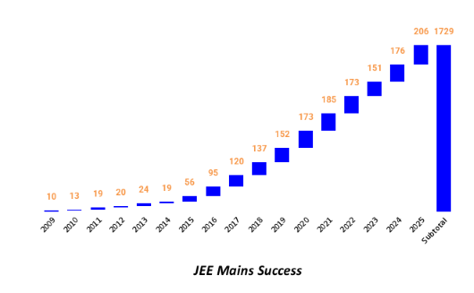 Since its inception in 2008, an astounding 1729 students of Rahmani Program of Excellence have been successful at the Joint Entrance Examination (JEE-Mains). Alhamdulillah, in 2025, 206 students successfully competed for the JEE-Mains examination which is an evidence of the strength of its education methodology.